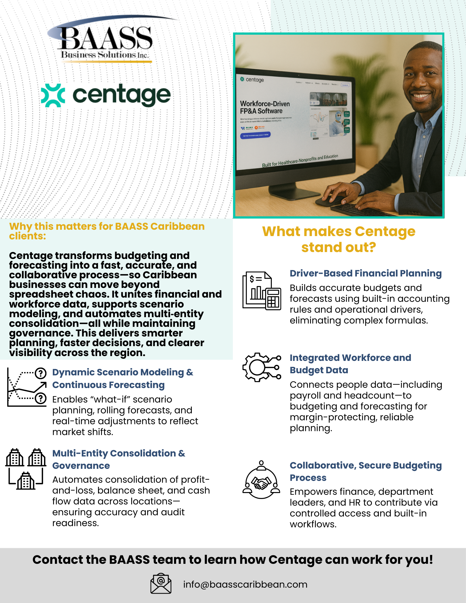 Smart business planning requires the ability to evaluate different potential scenarios. What-if planning with spreadsheets is difficult and time-consuming. Centage makes it easy to create multidimensional budget plans that let you see the impact of various scenarios.